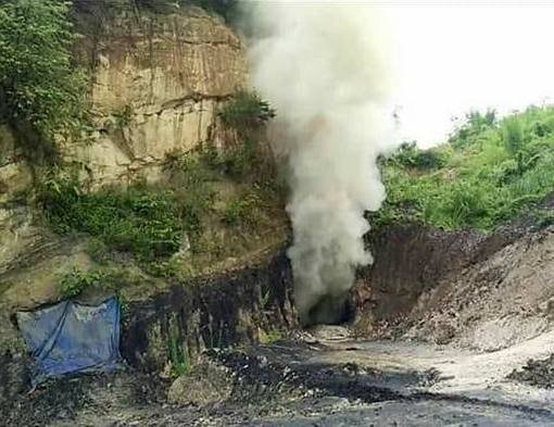 Most of the mining is taking place near Na Koon village, using underground tunnels. In recent months, villagers have been alarmed to see cracks appearing in the earth nearby. On June 24, 2017, a 25-feet deep sinkhole suddenly appeared in a cornfield west of the mine. The next day, smoke suddenly began pouring out of one of the mining tunnels.